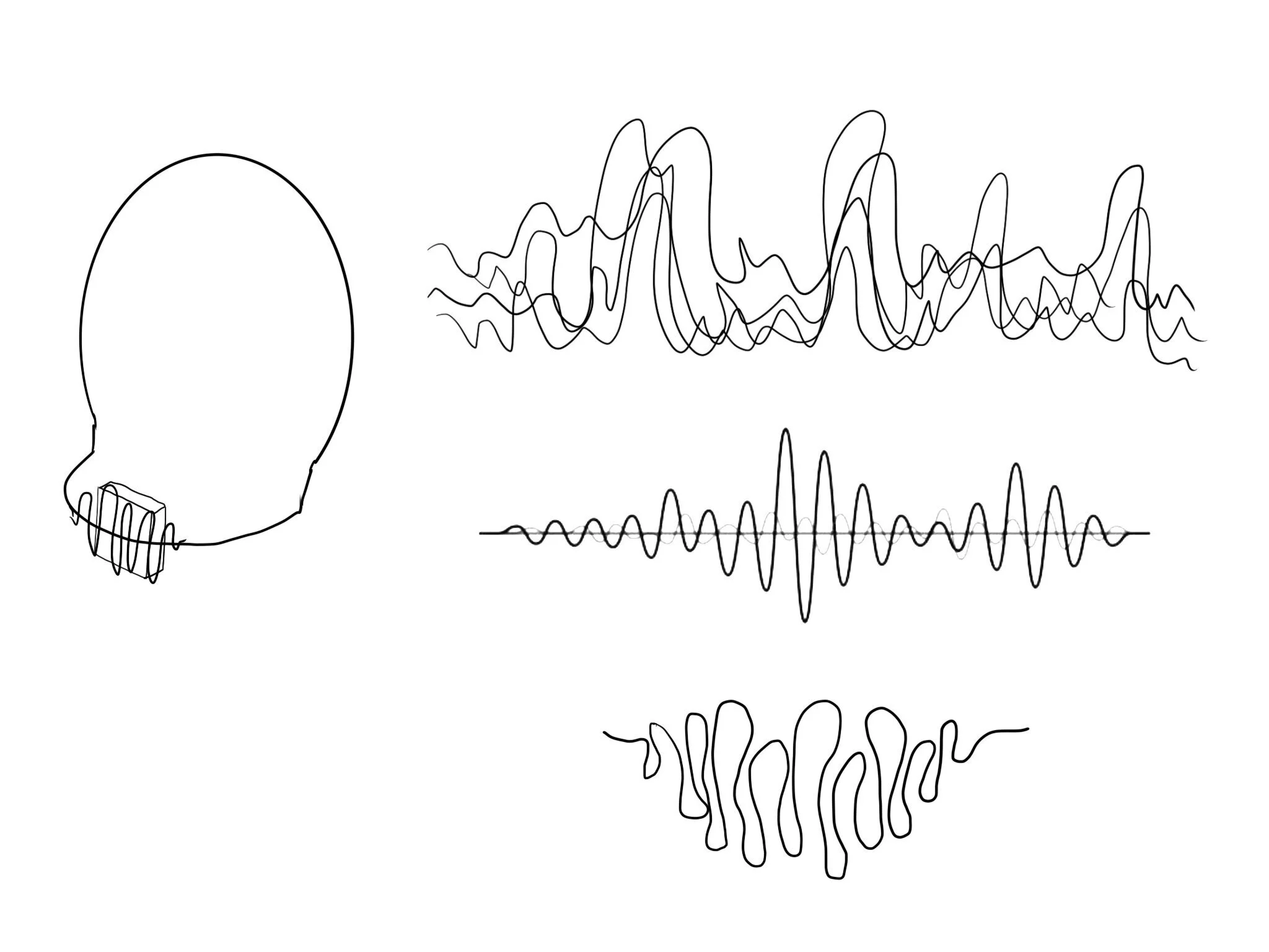 The recognition picture fits in front of the mouth. Air hitting the textile simulates the wave while the user talking